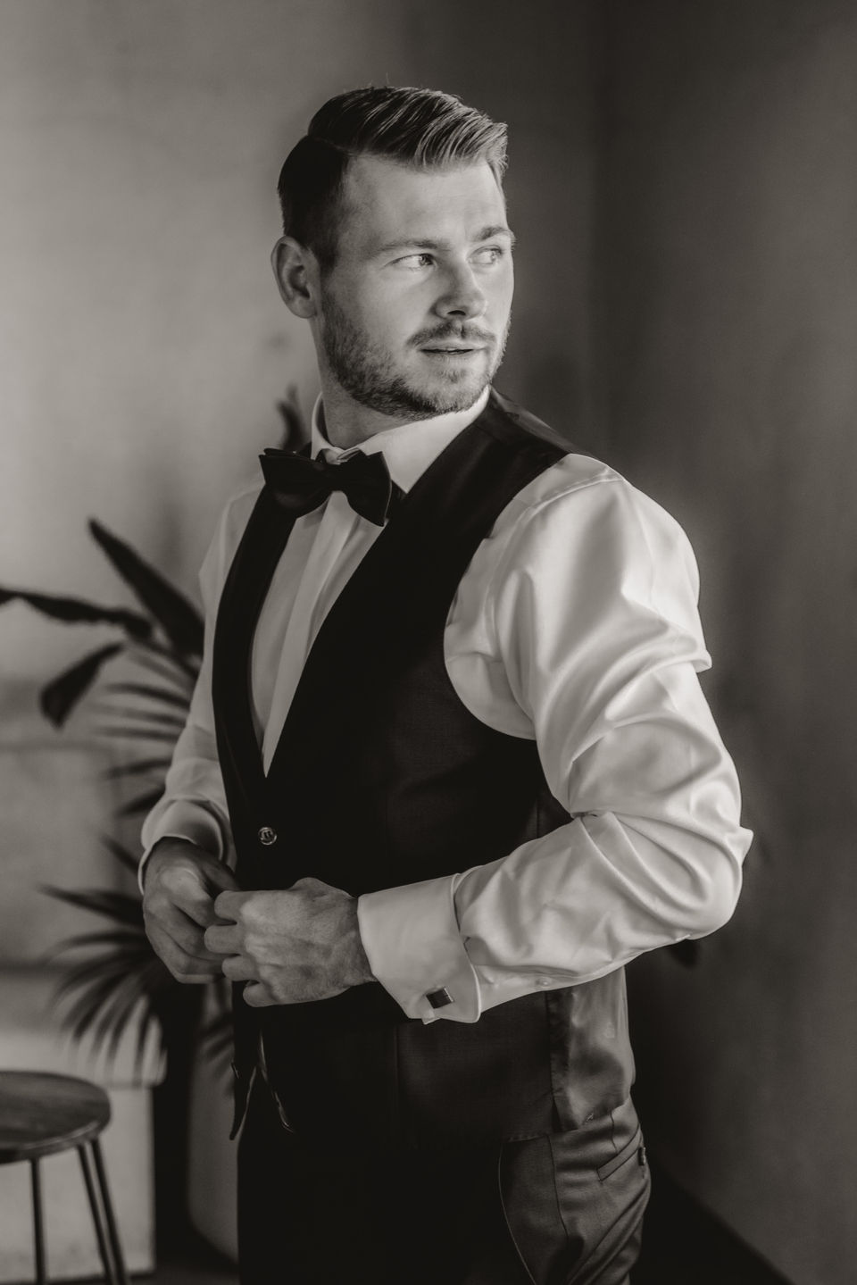 Nach der Zeremonie genießen die Gäste einen Empfang im Hof, während die Sonne in goldenem Licht untergeht. Der Abend endet mit einem unvergesslichen Tanz unter freiem Himmel, umrahmt von Lichtern und der frischen Landluft – ein perfekter Tag, an dem Tradition und Moderne in voller Harmonie aufeinandertreffen.
